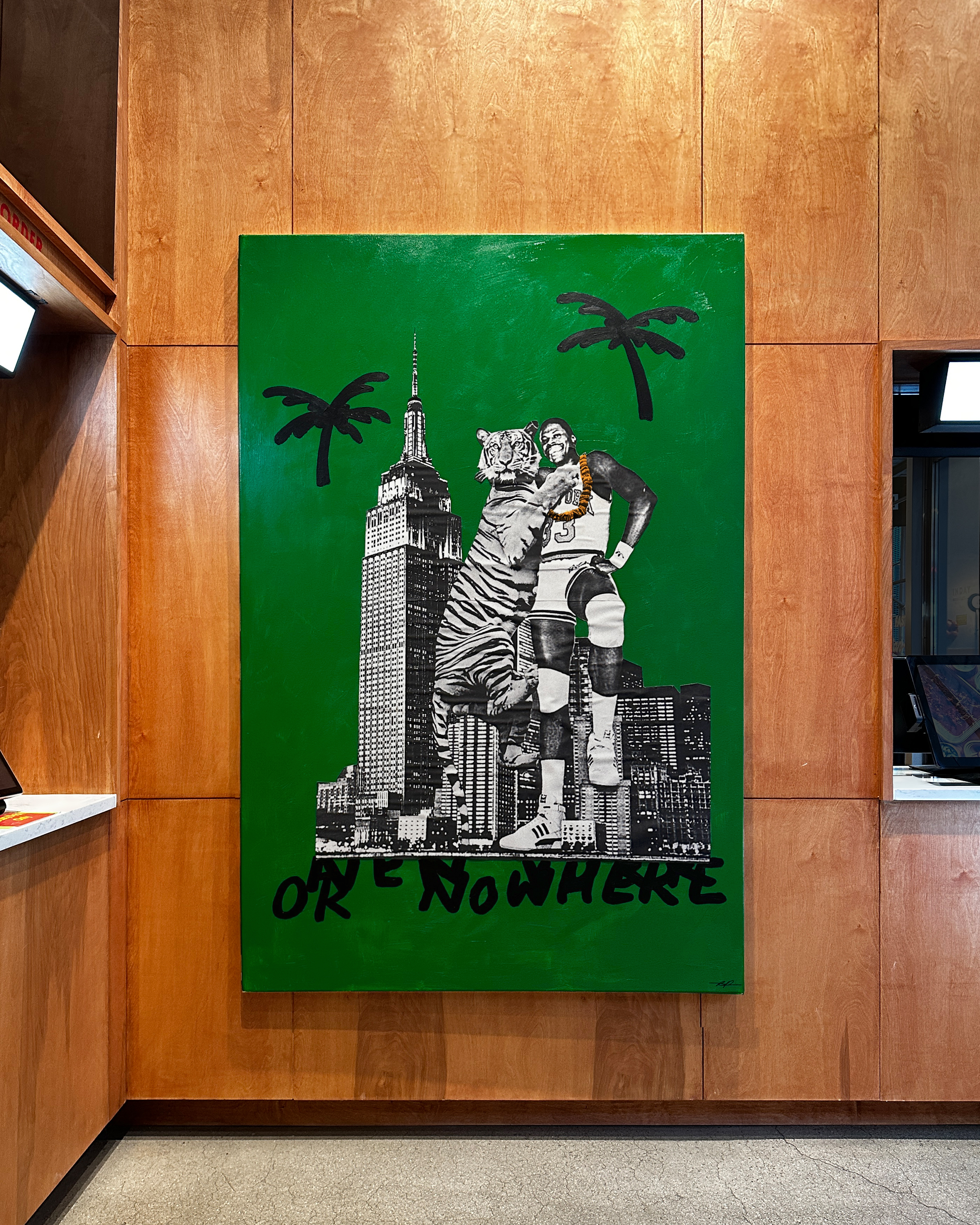Custom art and graphics included an original painting of Patrick Ewing holding a tiger in front of the Empire State building, commissioned by Inday’s owner Basu Ratnam.