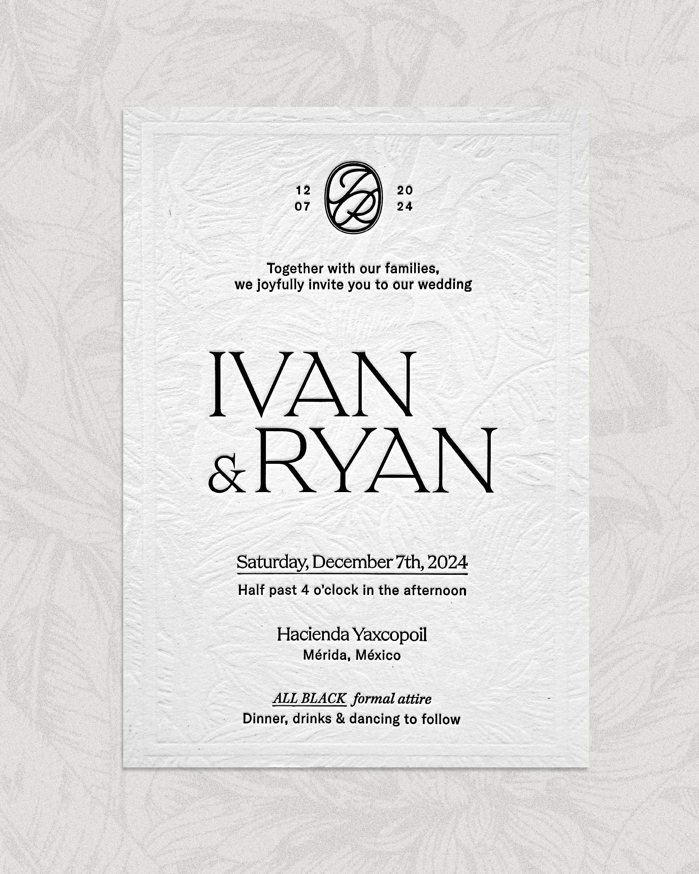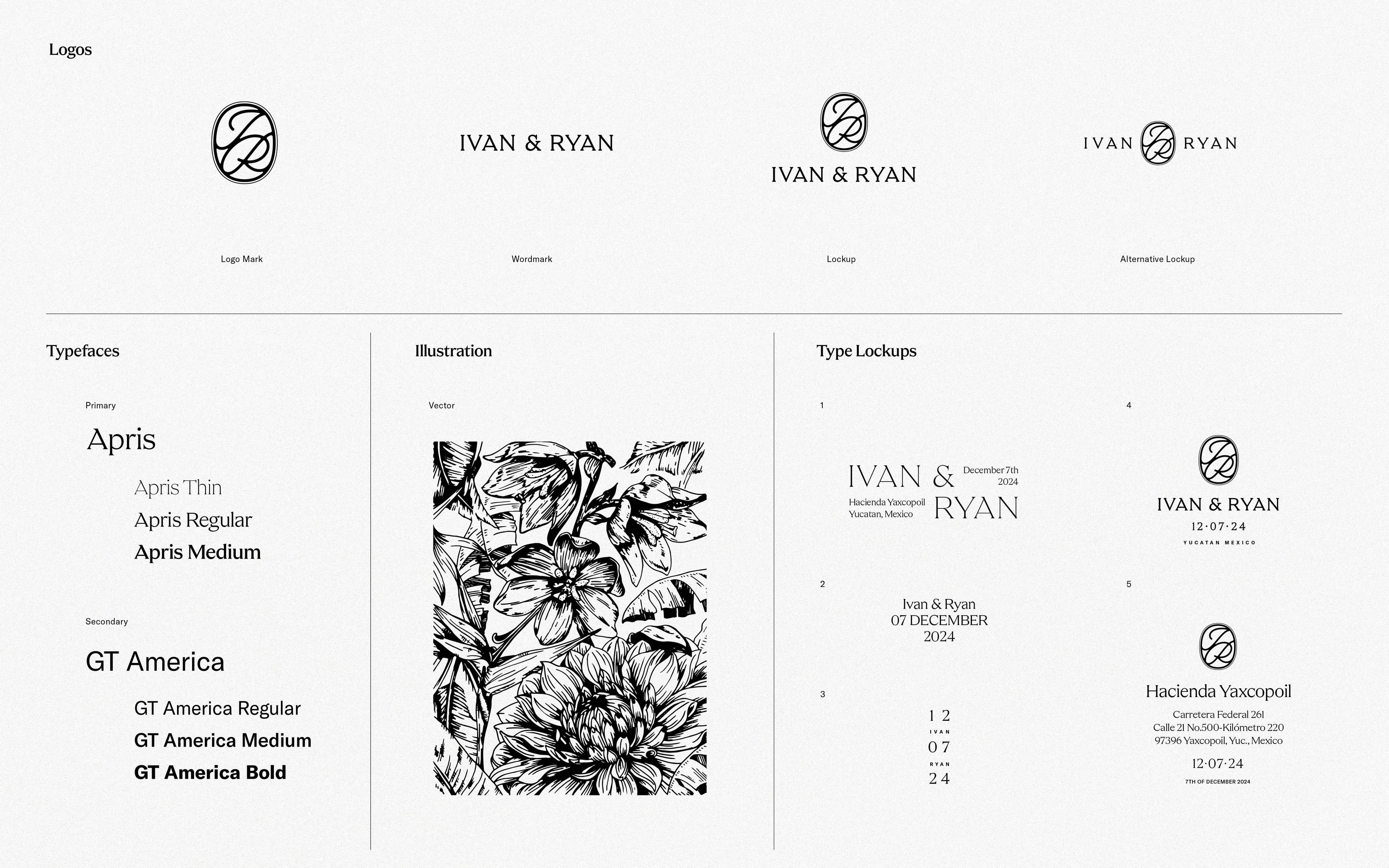 I supplied Stampa Print & Design with illustration and logo design files, including fonts and typography lockups, which they turned into beautiful debossed-printed invitations and stationary, under Ivan and Ryan’s direction.