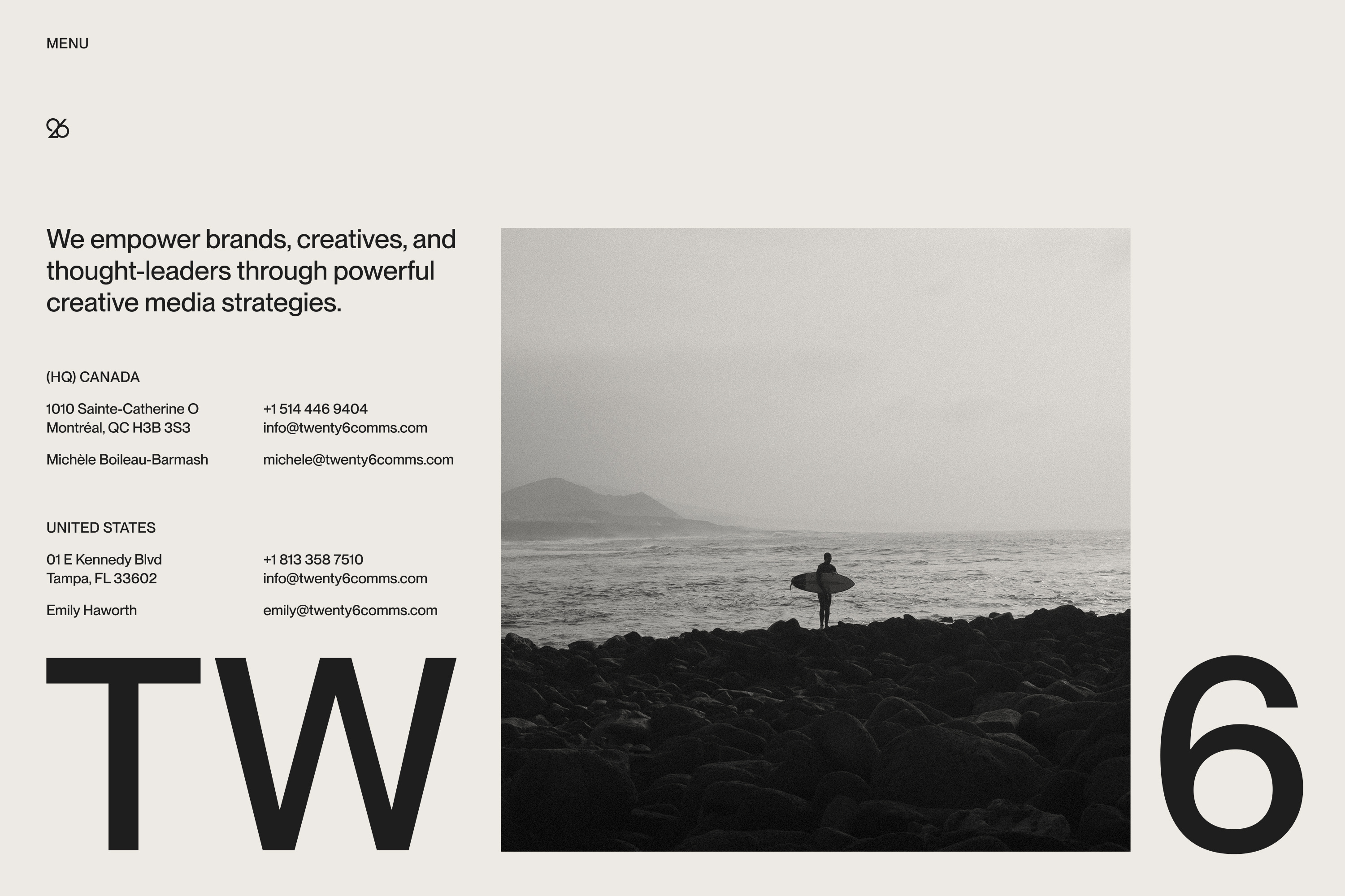TWENTY6 is an integrated communications and marketing agency empowering brands, creatives, and thought-leaders through creative media strategies.